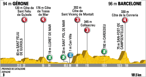 En definitiva, una etapa a priori muy sencilla y sin apenas dificultades orográficas, por lo que los sprinters tienen una oportunidad muy clara de conseguir la victoria, sin tanta opción a sorpresa como en la jornada anterior. Las 2 últimas llegadas a Banyoles, en 2010 y 2011 y también con este circuito final, se decidieron mediante un sprint masivo, obteniendo la victoria Mark Cavendish y Alessandro Petacchi respectivamente.