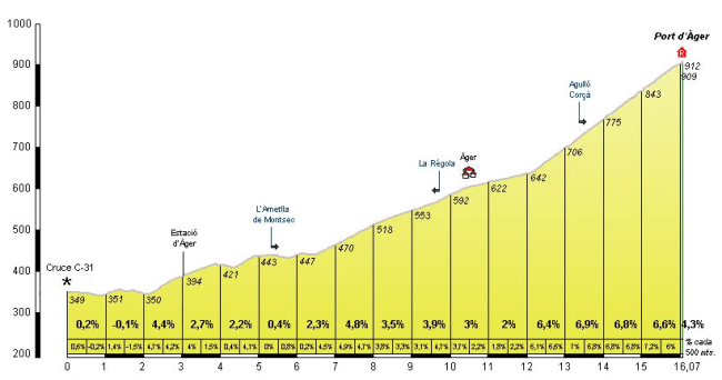 - Port d’Àger, 2ª (km 78,6): 915 m – 9,6 km – 5%