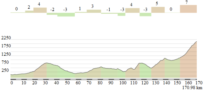 Como ya hemos comentado, se trata de una etapa de gran fondo muy exigente, sobre teniendo en cuenta las fechas tempranas de la temporada. Mucho desnivel y kilómetros que probablemente decidan la clasificación general. No obstante, ni la ascensión final ni el resto de puertos son subidas rompedoras por si solas, por lo que el espectáculo dependerá mucho de la actitud de los corredores, pudiendo haber grandes diferencias e incluso hundimientos en la parte final si el ritmo es elevado … pero resultar algo decepcionante si los favoritos dejan toda la batalla para los últimos km.