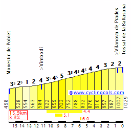 - Collsacreu, 3ª (km 64,7): 370 m – 9,3 km – 3%