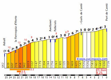 - Port de Cantó, Especial (km 172,3): 1.730 m – 24,6 km – 4,8%