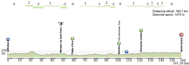 2ª ETAPA (Martes 19): GIRONA – BANYOLES (160,7 km). Track / Perfil oficial / Mapa y rutómetro