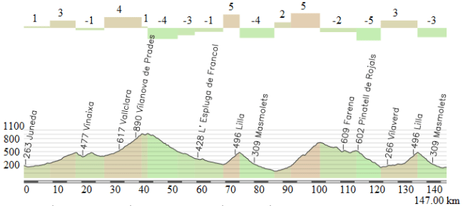 - Collsacreu, 3ª (km 141,4): 370 m – 9,3 km – 3%