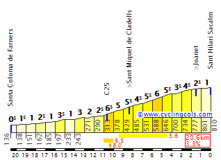 - Coll de la Trapa, n.p. (km 78,5): 1.385 m – 3 km – 6,4%