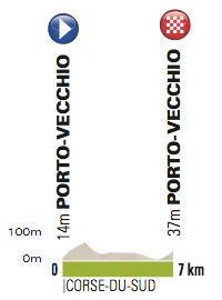 El 2º sector de la 1ª jornada es una contrarreloj individual, de nuevo en la ciudad de Porto Vecchio, con un recorrido muy corto, apenas 7 km, pero de trazado bastante complicado, con un repecho justo de salida (1 km al 6 % aproximadamente) hasta alcanzar la parte alta de la ciudad y la llegada también picando hacia arriba, siendo el mismo final de la etapa en línea.