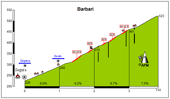 Barbari, el penúltimo puerto de la etapa (*solo desde el cruce a Zerain). Perfil de APM, click para ver descripción detallada.