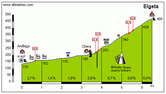 Elgeta por Ubera será el primer puerto de la etapa. Perfil de APM, click para ver una descripción detallada.