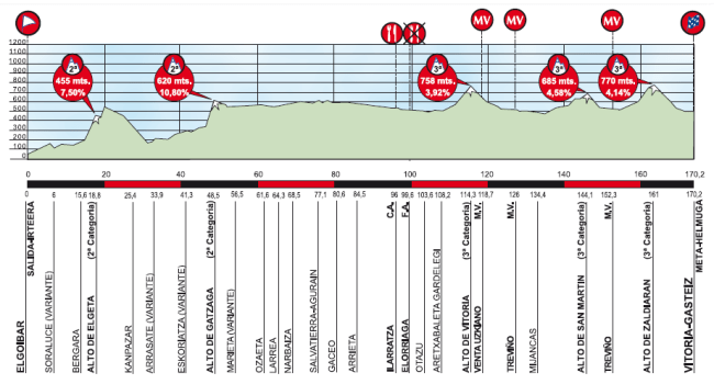 2ª ETAPA (Martes 2 Abril): ELGOIBAR – VITORIA-GASTEIZ (170,2 km). Rutómetro y horarios