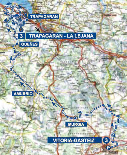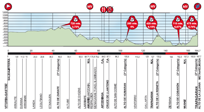 El primer final en alto de esta edición, con casi 170 km de recorrido entre Vitoria-Gasteiz y La Lejana, incluyendo, además de la dura ascensión final, varios pequeños puertos y una primera subida a la Arboleda por Trapagaran – La Reineta.