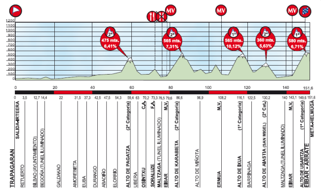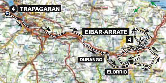 4ª ETAPA (Jueves 4 Abril): TRAPAGARAN – EIBAR-ARRATE (151,6 km). Rutómetro y horarios