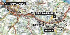 Tras su rápido descenso, utilizado como subida en la 2ª etapa, habrá un tramo más o menos llano circulando por el valle del río Deba antes de girar hacia a la izquierda y hacer el primer paso por Eibar, con meta volante incluída. Justo en esa localidad comienza la ascensión a Karabieta, un puerto sin rampas muy duras pero con un tramo central exigente: 3,5 km cercanos al 8 % de media.