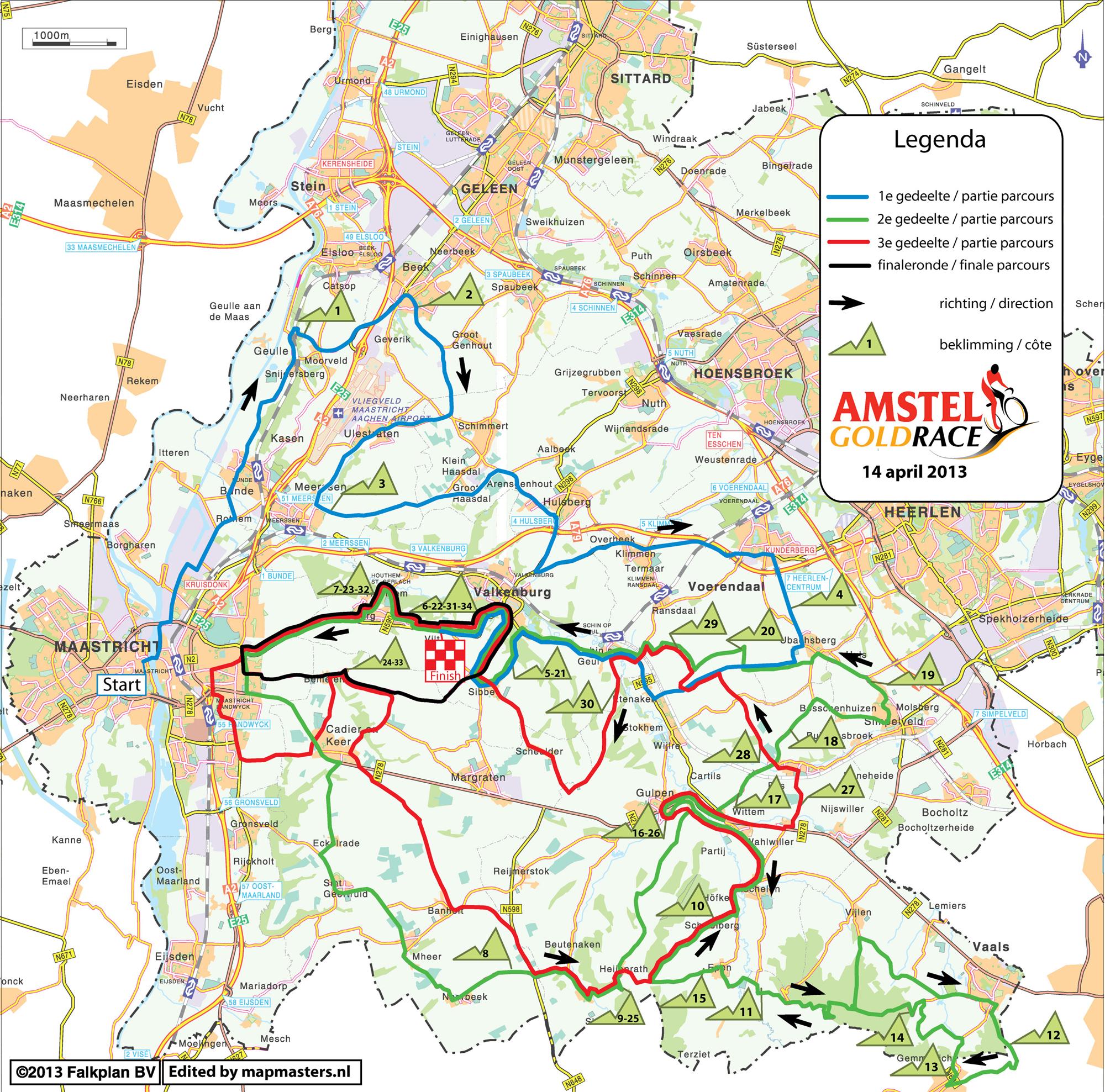 Sin embargo, el nuevo circuito final, favorable para el trabajo de grupo frente a corredores en solitario (salvo en la 1ª y última cota), puede perjudicar que haya ataques de los favoritos antes de la última subida, tanto por el terreno en sí como por hacer que las cotas más rompedoras, Eyserbosweg y Keutenberg, queden ahora muy lejos de meta. Resulta extraño que los organizadores hayan justificado el nuevo recorrido en base al resultado del Mundial, cuando aquella carrera fue globalmente más aburrida que la mayoría de ediciones de la Amstel Gold Race, aunque también es cierto que la inclusión de la cota de Geulhemmerberg le da más «picante» al circuito.