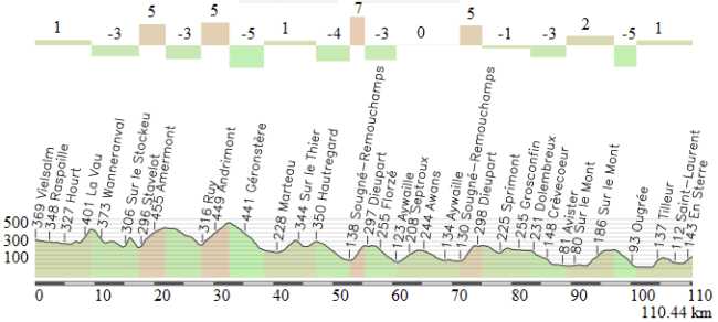 - Côte de La Roche-en-Ardenne (km 70): 403 m – 2,8 km – 6,2 %