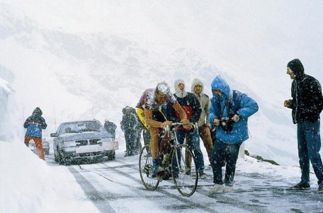 Sin embargo, el empecinamiento de Vincenzo Torriani, director de la prueba, hizo que un día destinado a la suspensión de la etapa se corriera … o mejor dicho, se sobreviviera. Y dicho día es el que da prestigio a aquel Giro, el que hace que los corredores que completaron aquella carrera fueran tratados como héroes, como ciclistas antiguos, como leyendas. Tuvo lugar ya hace un cuarto de siglo …