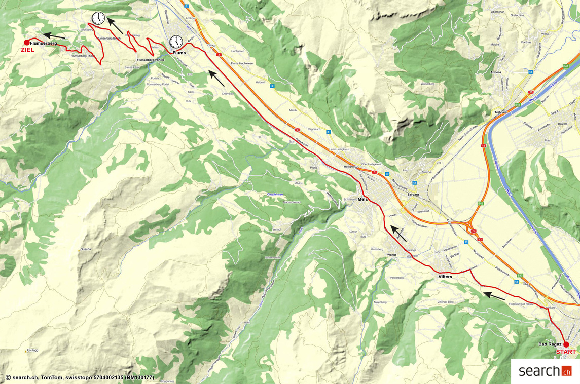 9ª ETAPA (Domingo 16 junio): BAD RAGAZ – FLUMSERBERG (CRI) (26,8 km). Rutómetro / Mapa llegada
