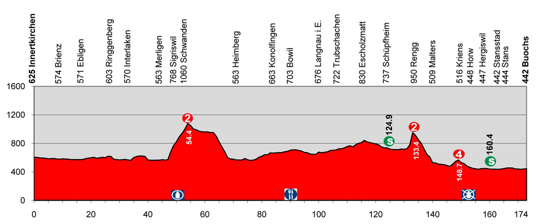 4ª ETAPA (Martes 11 junio): INNERTKIRCHEN – BUOCHS (174,4 km). Rutómetro / Mapa llegada