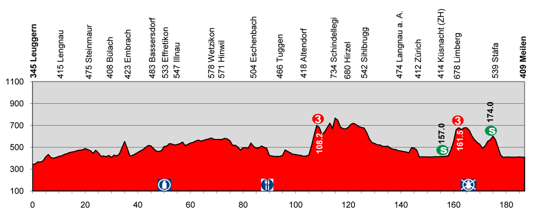 6ª ETAPA (Jueves 13 junio): LEUGGER – MEILEN (187,9 km). Rutómetro / Mapa llegada