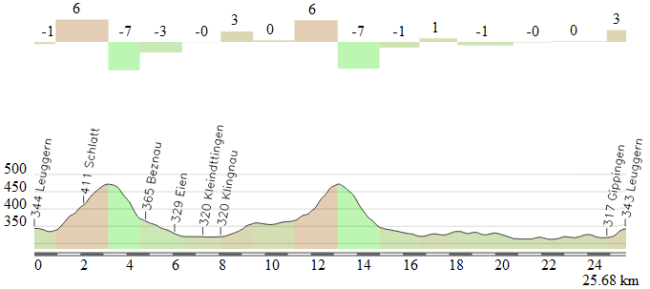- Traselingen, np (km 45,2): 697 m – 3,6 km – 4,7 %