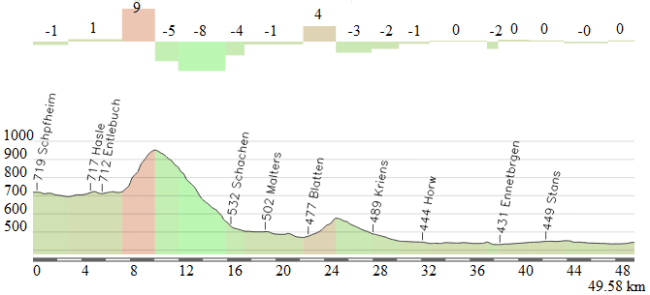 - Kriens, 4ª (km 149,2): 570 m – 1,2 km – 5,4 %