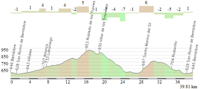 • Alto Robledo-Las Traviesas (km 92,6 / 188,4):  877 m – 3 km – 5%