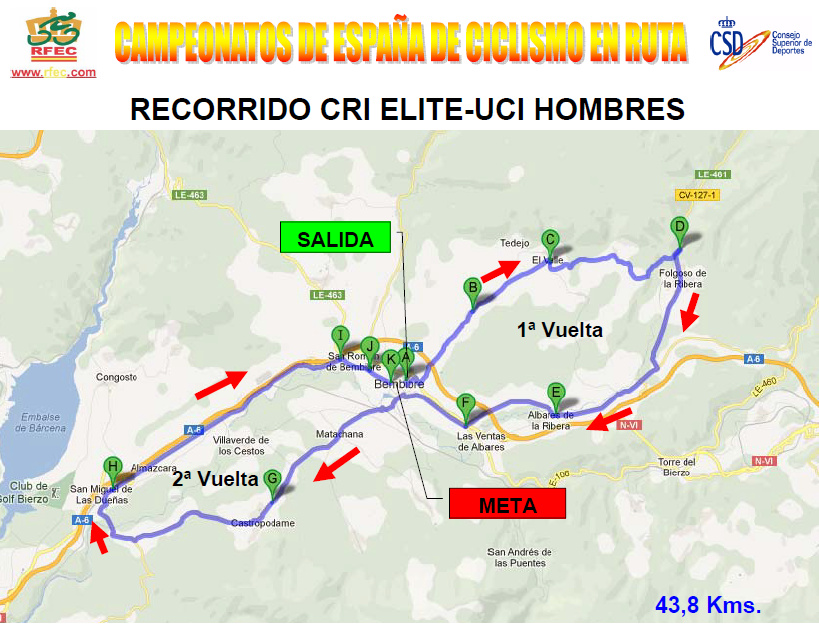 Viernes 21 junio:  BEMBIBRE  – BEMBIBRE  (CRI)  (43,8 km).  Rutómetro