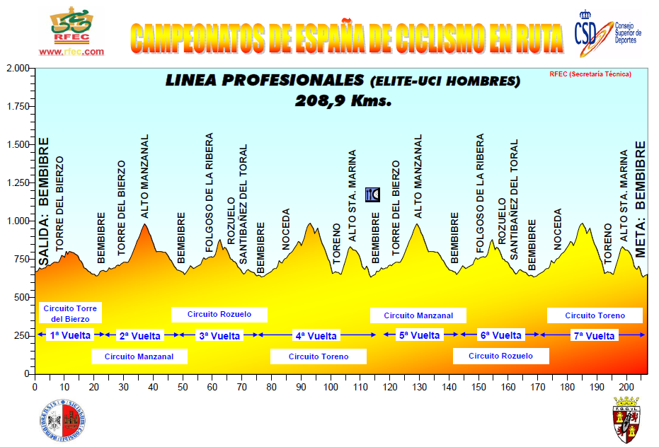 Domingo 23 junio:  BEMBIBRE  – BEMBIBRE  (208,9 km).  Rutómetro