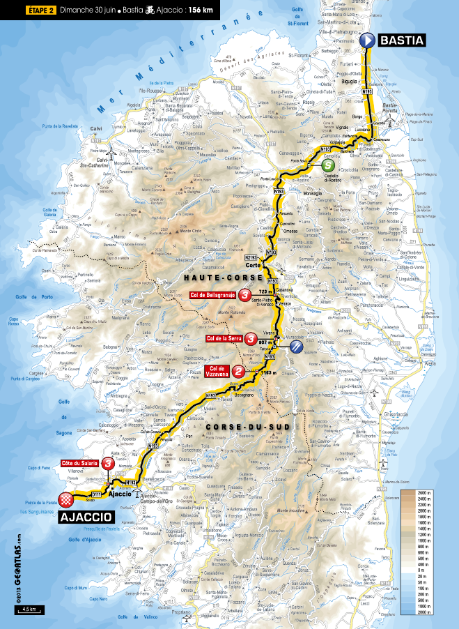 2ª ETAPA (Domingo 30 de Junio): BASTIA — AJACCIO (156 km). Info oficial / Últimos km
