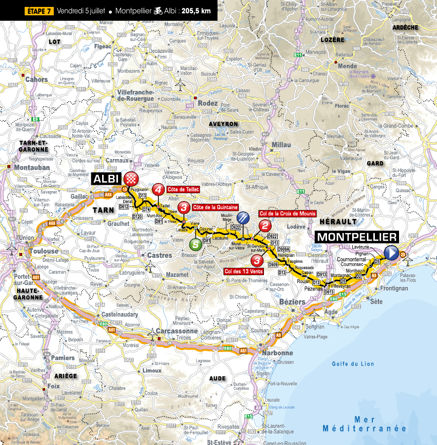 7ª ETAPA (Viernes 5 de Julio): MONTPELLIER — ALBI (205,5 km). Info oficial / Últimos km