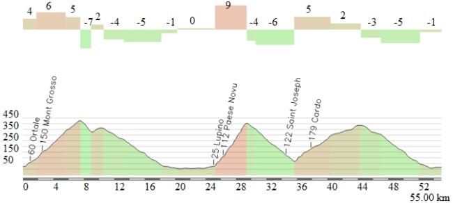 - Col de San Martino, 3ª (km 58): 429 – 7,5 km – 5,4 %