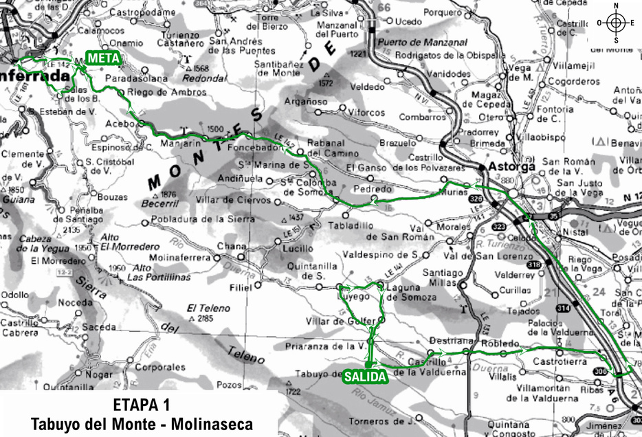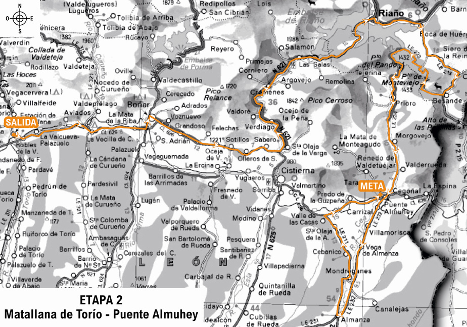 Alternativa manteniendo las metas volantes (Astorga y Tabuyo), con los puertos de Llano de las Ovejas y Lombillo oeste