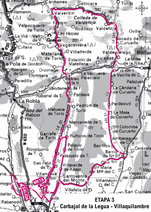 2ª ETAPA (3 de agosto): MATALLANA DE TORIO – PUENTE ALMUHEY (164,7 km). Rutómetro / Perfil oficial / Mapa salida – llegada