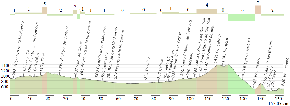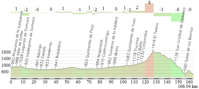 1ª ETAPA (2 de agosto): TABUYO DEL MONTE – MOLINASECA (154,7 km). Rutómetro / Perfil oficial / Mapa salida – llegada