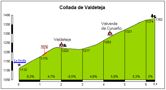Valdeteja, el puerto más duro de la etapa aunque muy lejos de meta. Perfil de Josemi Ochoa, click para ver descripción y fotos
