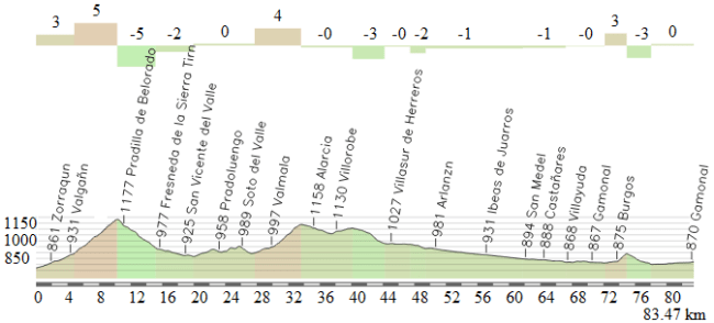 La 2ª mitad de la etapa, con Pradilla, Valmala y el repecho del Castillo antes de meta. Click para ver el mapa