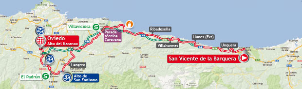 Nueva etapa de media montaña, en este caso con salida en San Vicente de la Barquera, localidad situada al noroeste de Cantabria, y llegada en al Alto del Naranco, junto a la capital de Asturias: una subida de dureza media y todo un clásico de la Vuelta a España durante las décadas de los 80 y los 90, pero que llevaba más de 15 años sin formar parte de la prueba, con la última llegada en 1997.