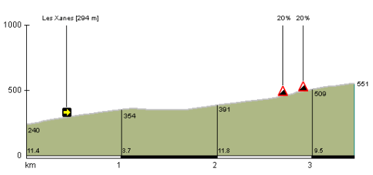 - Alto de Praviano, np (11,5): 175 m – 1,7 km – 5,5 % *sin contar subida previa