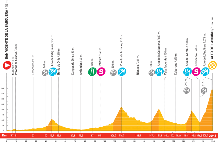 El Angliru volverá a ser protagonista en la edición de este año, no en la etapa globalmente más dura pero si colocado en un lugar estratégico para decidir el podio final, subiéndose el penúltimo día y con un recorrido idéntico al de 2011.