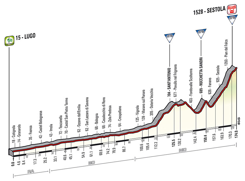 - 9ª etapa (18 de mayo): Lugo – Sestola (174 km) -> mapa