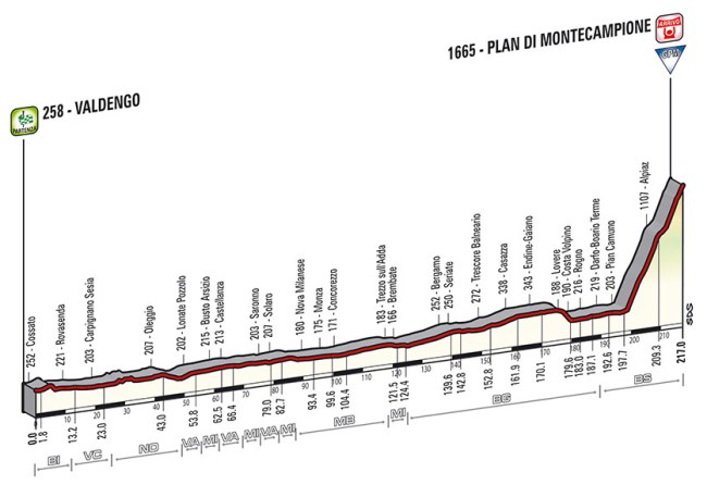 - 15ª etapa (25 de mayo): Valdengo – Plan di Montecampione (217 km) -> mapa