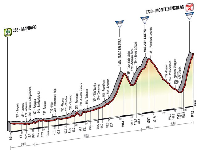 - 20ª etapa (31 de mayo): Maniago – Monte Zoncolan (167 km) -> mapa