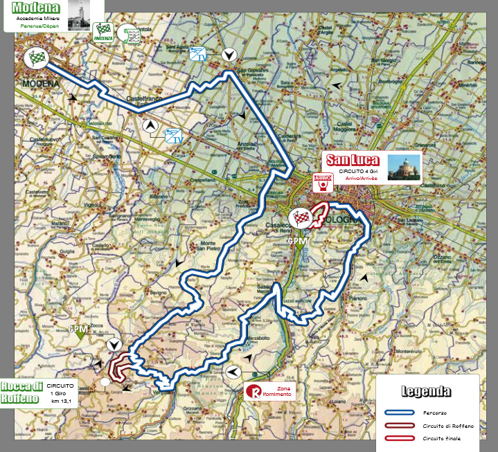 Modena – San Luca (200 km). Rutómetro / Descripción (en italiano)