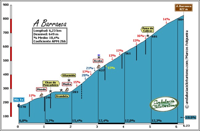 A Barranca por río Eo y Acebo. Perfil de Andalucia Cicloturismo / Marcos Folgueira, click para descripción y fotos