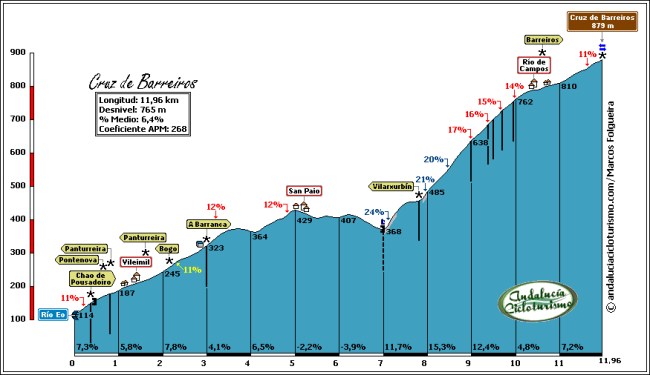 Cruz de Barreiros por río Eo y San Paio. Perfil de Andalucia Cicloturismo / Marcos Folgueira, click para descripción y fotos