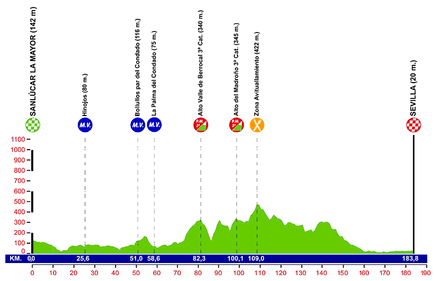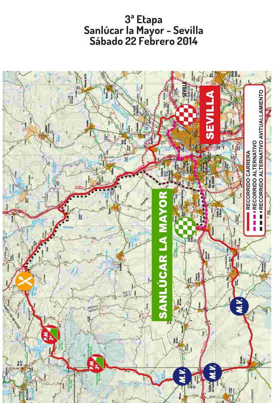 3ª ETAPA (Sábado 22): SANLÚCAR LA MAYOR – SEVILLA (183,8 km). Rutómetro / Planos salida – llegada