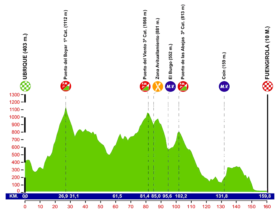 La carrera se despide con una etapa de 160 km entre la localidad gaditana de Ubrique y la localidad costera de Fuengirola, en la provincia de Málaga, con un trazado de media montaña de cierta dureza pero cuyas mayores dificultades se encuentran de inicio, siendo la parte final mucho más sencilla e incluso con unos últimos km completamente llanos.