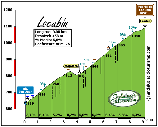 - Puerto del Locubín, 2ª (km 145,3): 1.069 m – 8,6 km – 4,8%