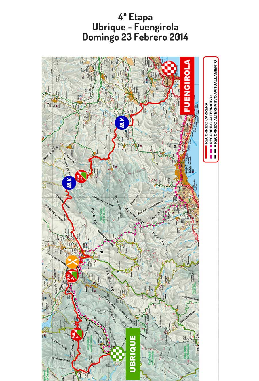 4ª ETAPA (Domingo 23): UBRIQUE – FUENGIROLA (159,8 km). Rutómetro / Planos salida – llegada / Últimos 3 km