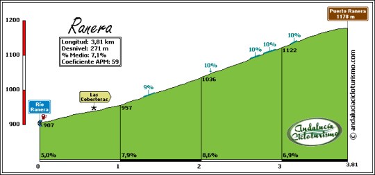 - Puerto de Valdepeñas / Ranera, 2ª (km 158,5): 1.165 m – 3,5 km – 7,6%