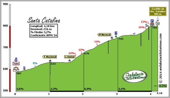 - Castillo de Santa Catalina, 3ª (km 186,5): 779 m – 3,5 km – 5,4%