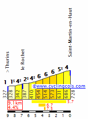 - Côte de Saint Martin en Haut, 3ª (km 103): 727 m – 8,6 km – 4,5 %
